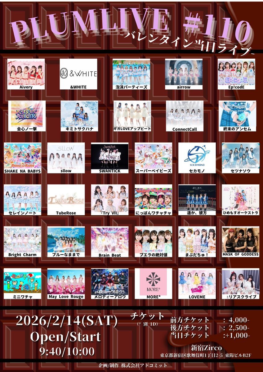 【SWANTICK出演】2026/02/14(土)「PLUMLIVE 110 -バレンタイン当日ライブ-」@新宿